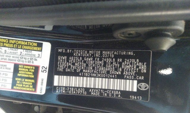 VIN: 4T1B21HK3KU012441